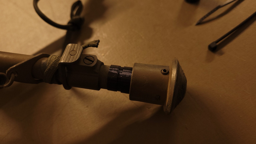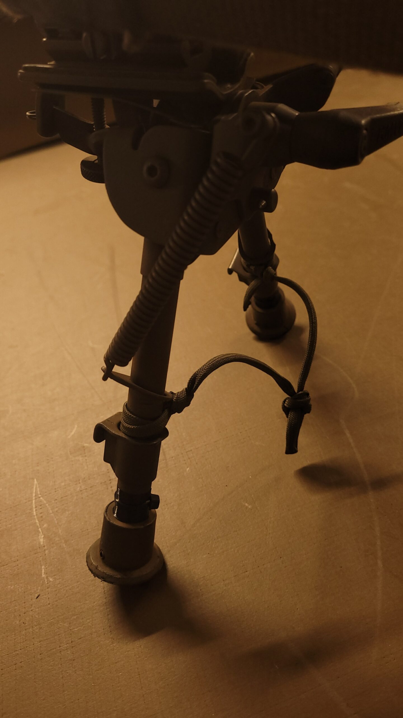 - Slide BLACK GARLIC down until it bottoms out against the foot of the bipod, this will compress the spring on the foot